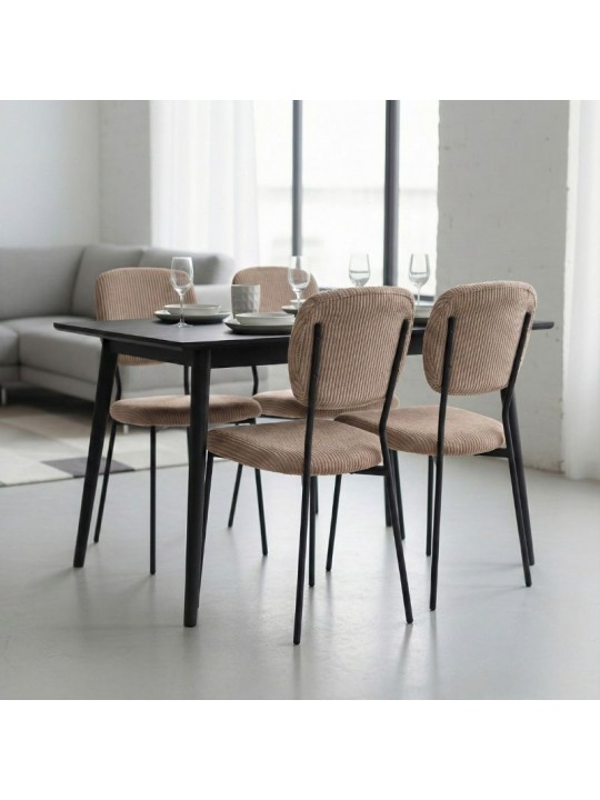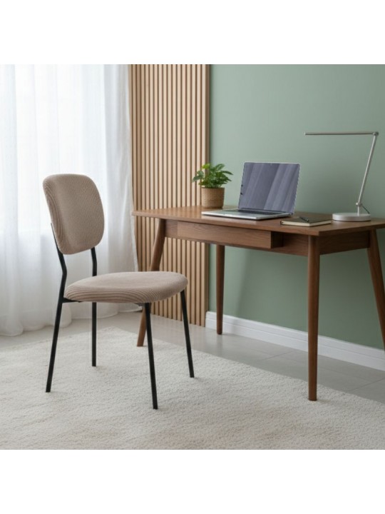 Η καρέκλα Kevin θα φέρει μία αίσθηση εκλεπτυσμένης κομψότητας στον χώρο σας. Το πλούσιο κοτλέ ύφασμά της σε μόκα απόχρωση χαρίζει ζεστασιά και υφή, ενώ τα μαύρα μεταλλικά πόδια προσδίδουν μοντέρνο χαρακτήρα και σταθερότητα. Ιδανική επιλογή τόσο για το σπίτι όσο και για επαγγελματικούς χώρους που θέλουν να επικοινωνήσουν ποιότητα και design σε κάθε λεπτομέρεια.