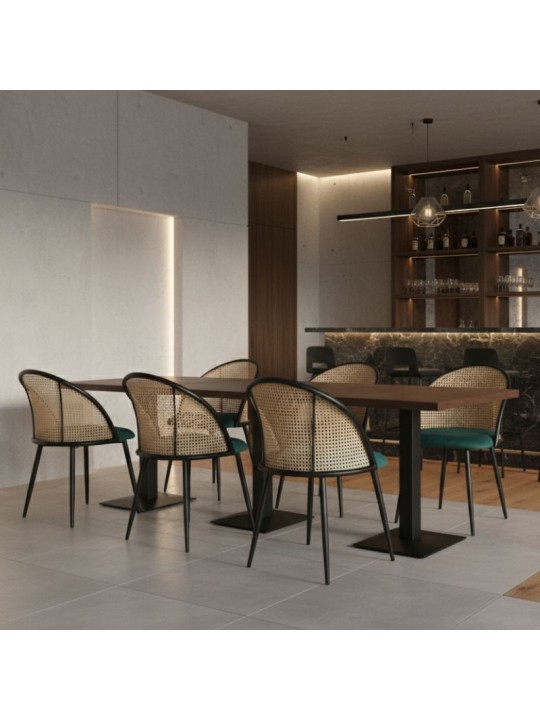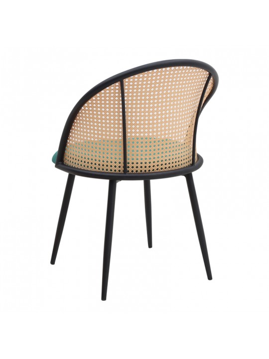 - Χρώμα: Κυπαρισσί βελούδινο κάθισμα - πλάτη pe rattan σε φυσικό χρώμα - μαύρα μεταλλικά πόδια.