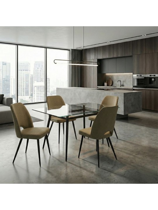 Καρέκλα τραπεζαρίας Christy Megapap λαδί ύφασμα - μεταλλικό μαύρο πόδι 47x59x90εκ.