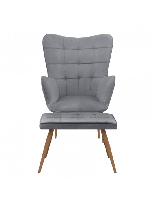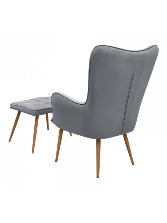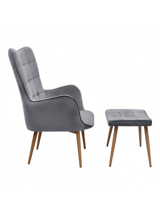 Πολυθρόνα - Μπερζέρα με υποπόδιο Lily Megapap γκρι βελούδο - μεταλλικό πόδι χρώμα φυσικό 70x62x98εκ.