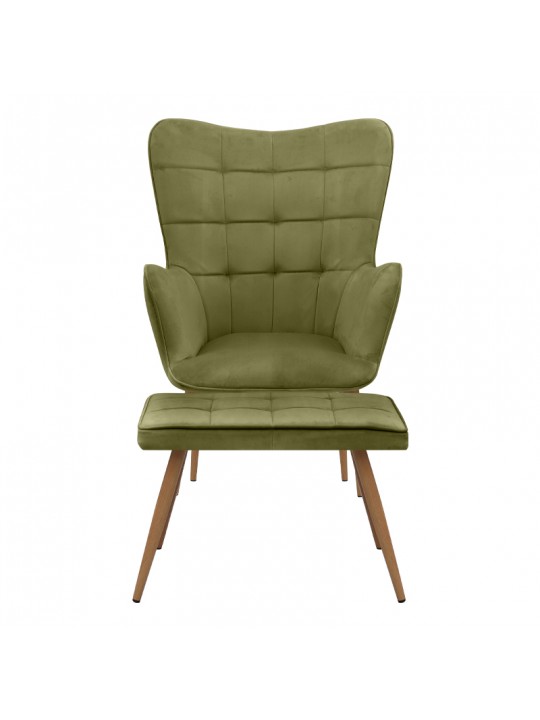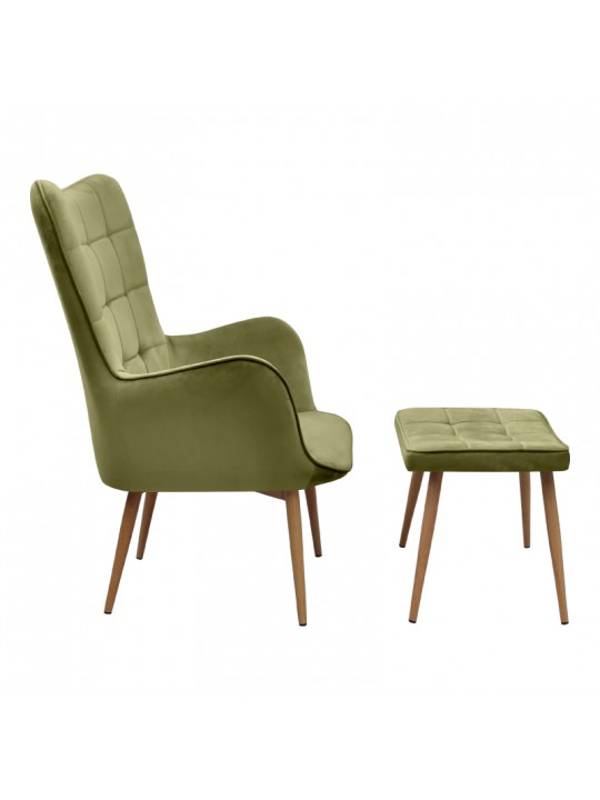 Πολυθρόνα - Μπερζέρα με υποπόδιο Lily Megapap λαδί βελούδο - μεταλλικό πόδι χρώμα φυσικό 70x62x98εκ.