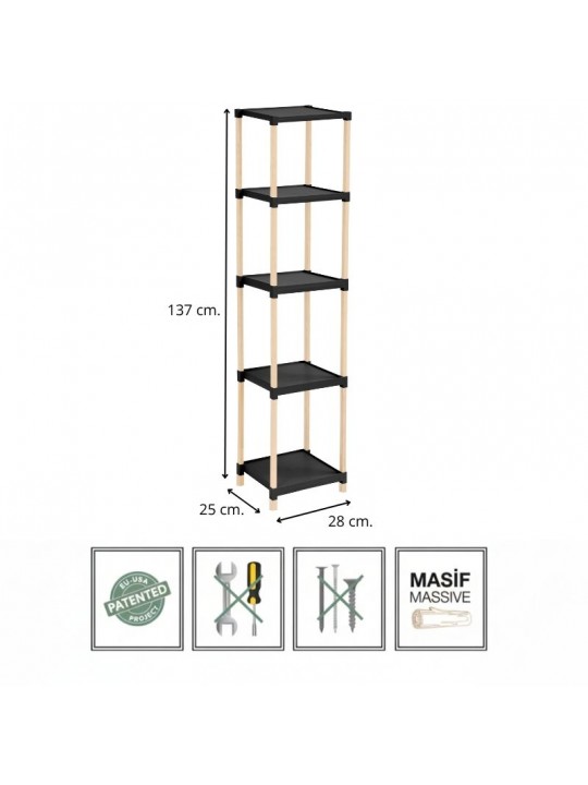 Ραφιέρα δαπέδου πλαστική - ξύλινη χρώμα φυσικό - μαύρο 28x25x137εκ.