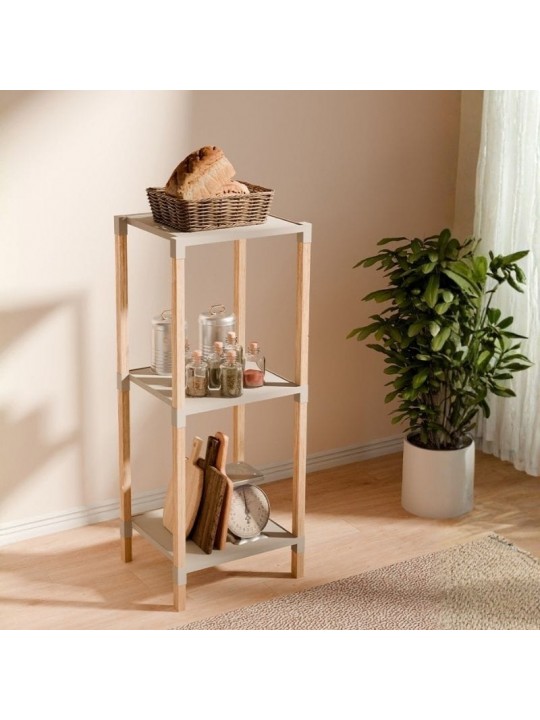 Ραφιέρα δαπέδου πλαστική - ξύλινη χρώμα φυσικό - μπεζ 28x25x72εκ.