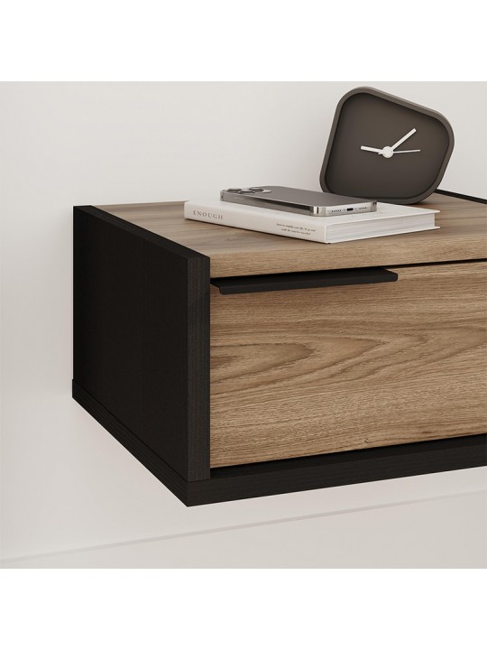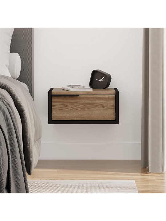 Κομοδίνο επιτοίχιο Eco Megapap χρώμα black wood - καρυδί 40x33x18,5εκ.