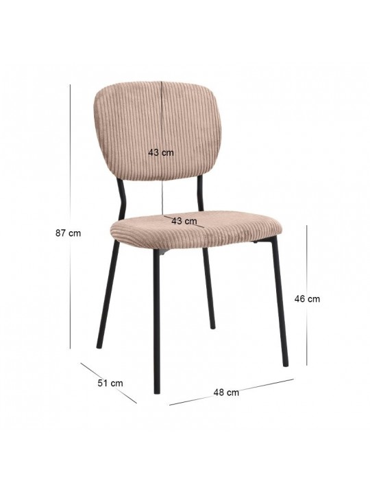 Η τραπεζαρία Rubes - Kevin θα φέρει μία αίσθηση εκλεπτυσμένης κομψότητας στον χώρο σας. Το πλούσιο κοτλέ ύφασμα της καρέκλας χαρίζει ζεστασιά και υφή, ενώ τα μεταλλικά πόδια προσδίδουν μοντέρνο χαρακτήρα και σταθερότητα. Ιδανική επιλογή τόσο για το σπίτι όσο και για επαγγελματικούς χώρους που θέλουν να επικοινωνήσουν ποιότητα και design σε κάθε λεπτομέρεια.