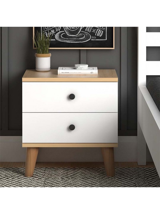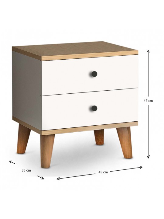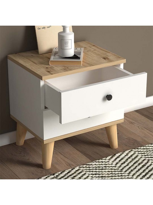 Κομοδίνο Luce Megapap από μελαμίνη χρώμα λευκό - oak 45x35x47εκ.