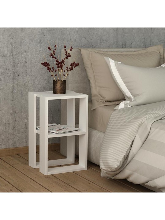Κομοδίνο - τραπεζάκι βοηθητικό Lonie Megapap από μελαμίνη χρώμα λευκό 34x30x55εκ.