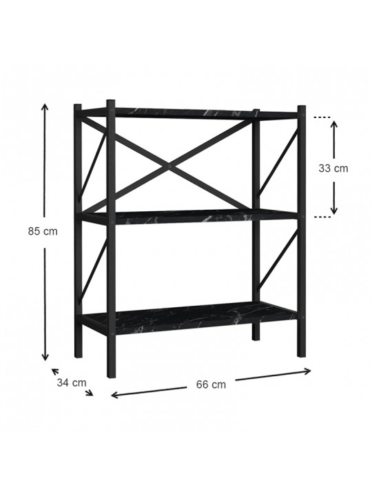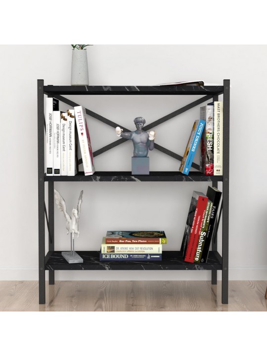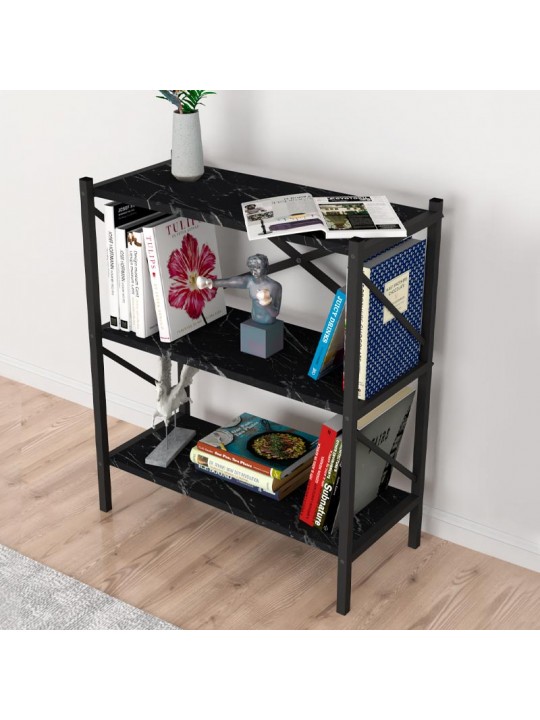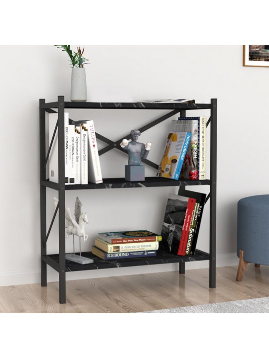 Βιβλιοθήκη Jocasta Megapap μεταλλική - μελαμίνης χρώμα μαύρο εφέ μαρμάρου 66x34x85εκ.