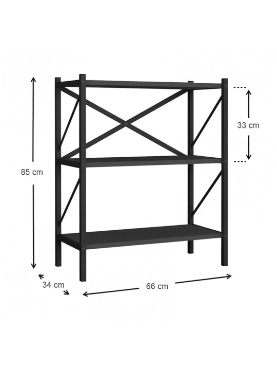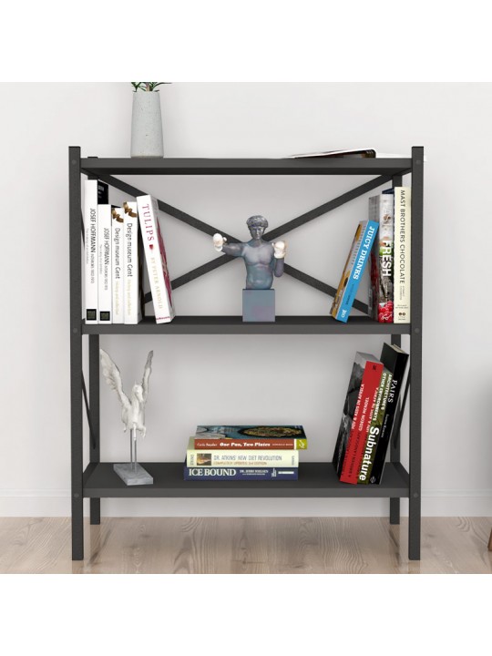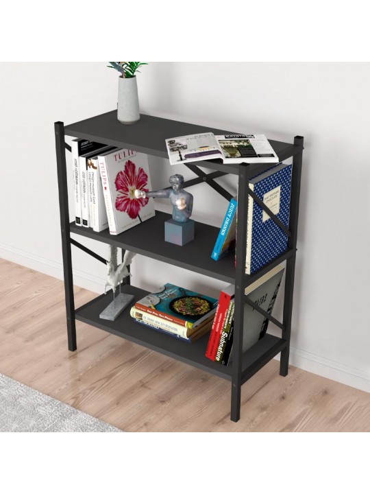Βιβλιοθήκη Jocasta Megapap μεταλλική - μελαμίνης χρώμα ανθρακί 66x34x85εκ.