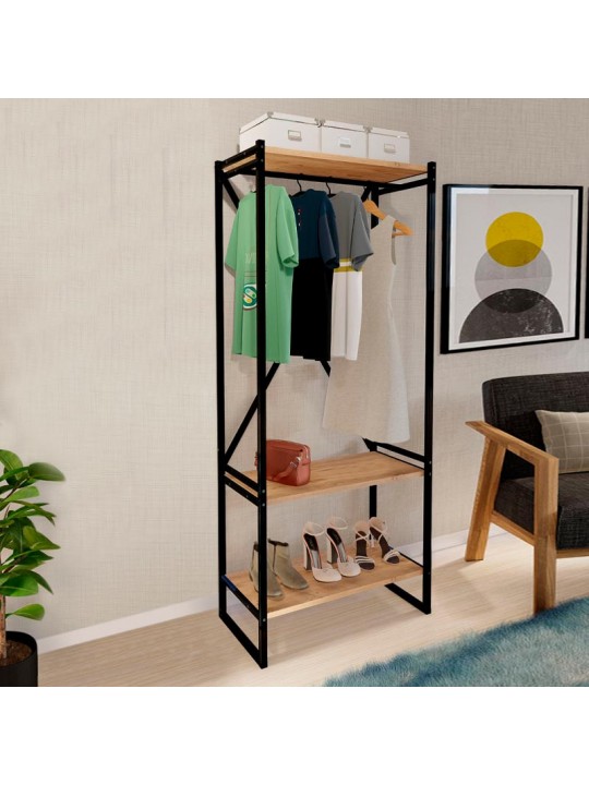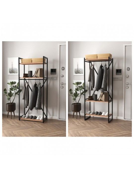 Έπιπλο εισόδου - Κρεμάστρα Zula Megapap μεταλλική - μελαμίνης χρώμα μαύρο - pine oak 66x30x160εκ.