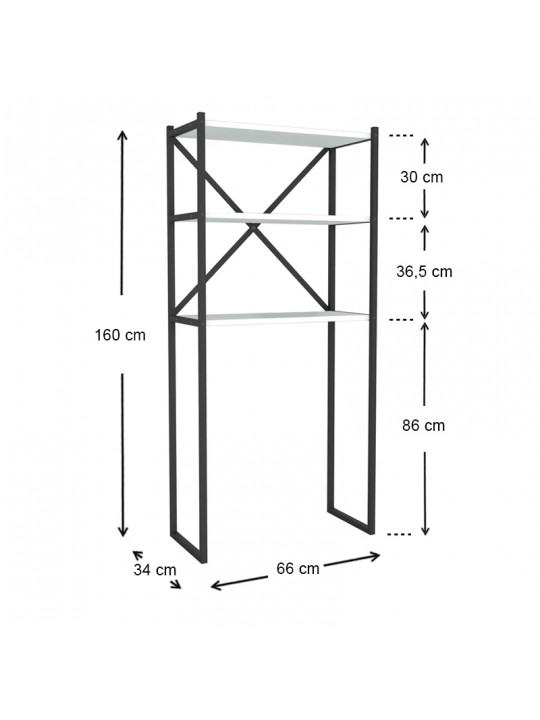 Έπιπλο πλυντηρίου Mindy Megapap μεταλλικό - μελαμίνης χρώμα μαύρο - λευκό 66x34x160εκ.