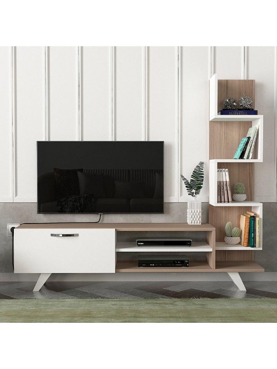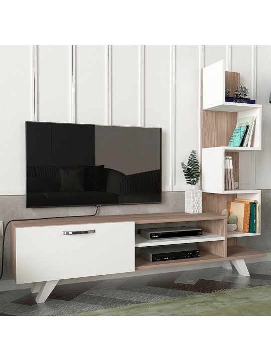 Έπιπλο τηλεόρασης Ceren Megapap από μελαμίνη χρώμα λευκό - cordoba 149,5x31x131,6εκ.
