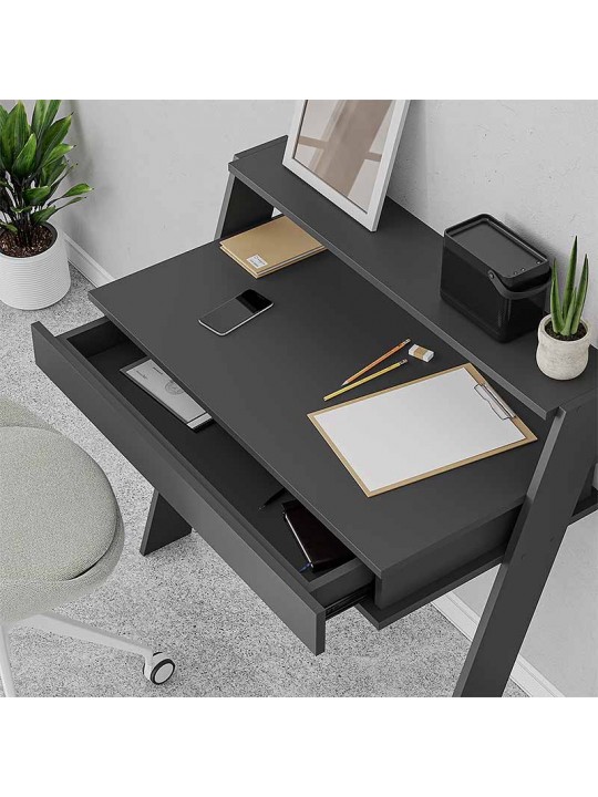 Γραφείο εργασίας Cowork Megapap από μελαμίνη χρώμα ανθρακί 94x50x91εκ.