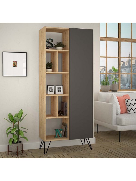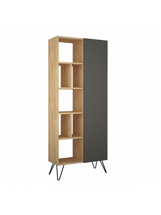 Βιβλιοθήκη μελαμίνης Jedda Megapap χρώμα φυσικό οξιάς - ανθρακί 80,6x29,6x191εκ.