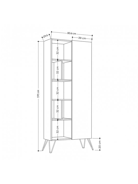 • Διαστάσεις: Μήκος 80,6 x Βάθος 29,6 x Ύψος 191 εκ.