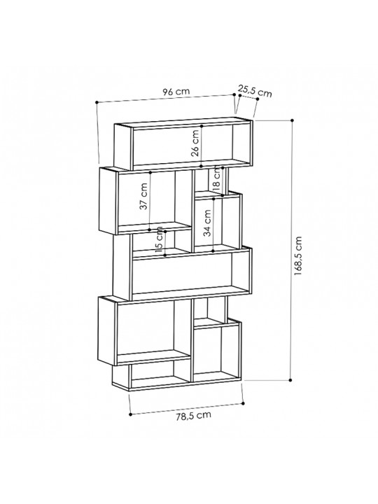 - Διαστάσεις: Μήκος 96 x Βάθος 25,5 x Ύψος 168,5 εκ.