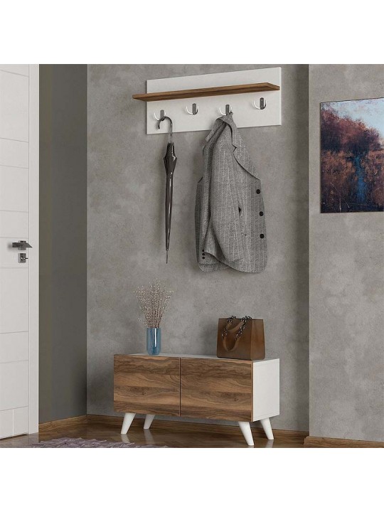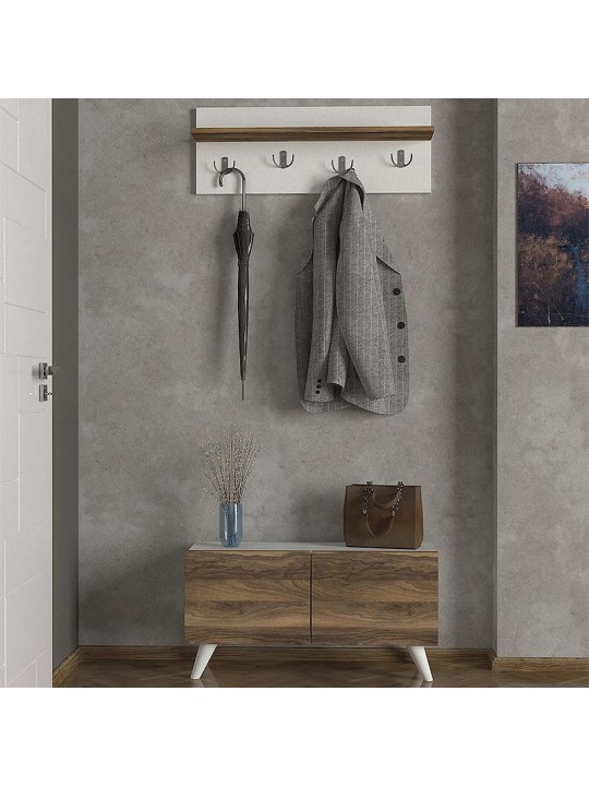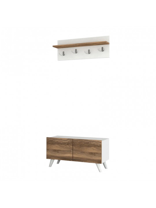 Έπιπλο εισόδου Lores Megapap από μελαμίνη χρώμα λευκό - καρυδί 80x31,3x41,5εκ.
