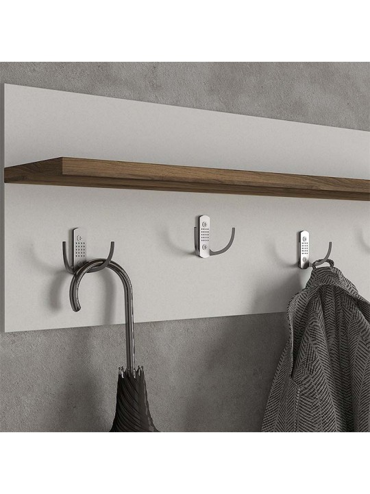 • Η ραφιέρα - κρεμάστρα φέρει ράφι για τοποθέτηση διακοσμητικών στοιχείων, καθώς επίσης και οκτώ μεταλλικούς γάντζους για κρέμαση ρούχων.