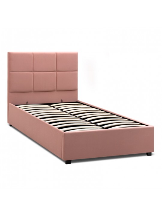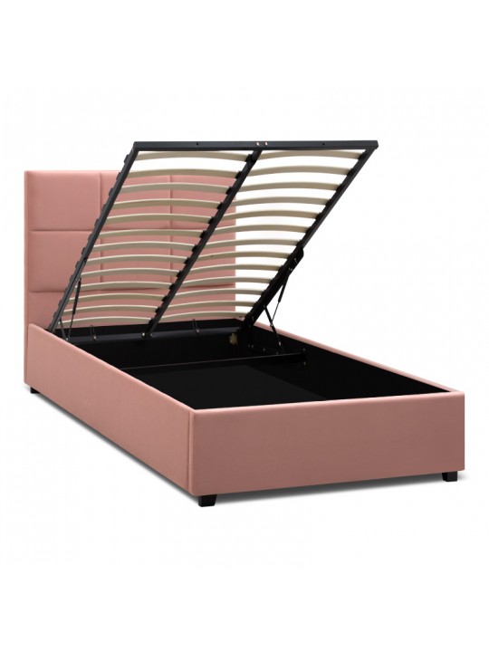 Κρεβάτι Kingston Megapap βελούδινο με αποθηκευτικό χώρο χρώμα melon pink 100x200εκ.