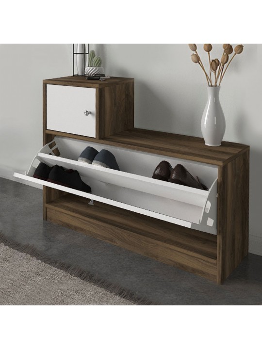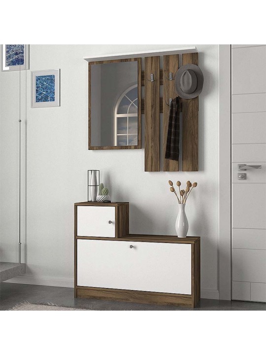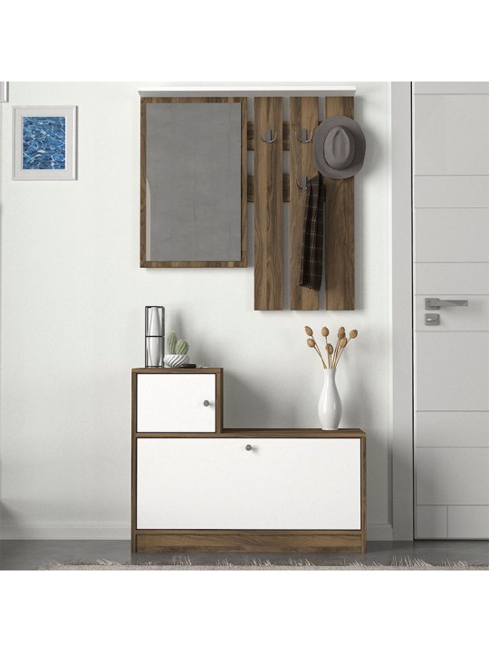 Έπιπλο εισόδου Galina Megapap από μελαμίνη χρώμα καρυδί - λευκό 91,8x27x70εκ.