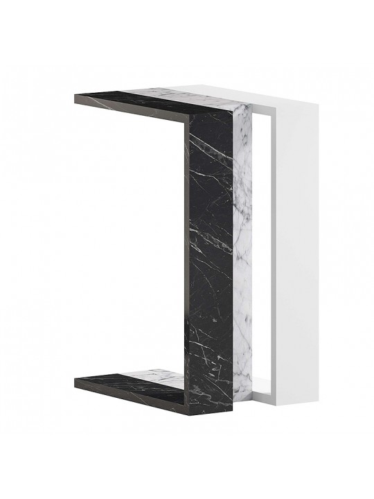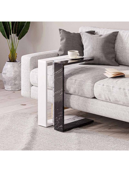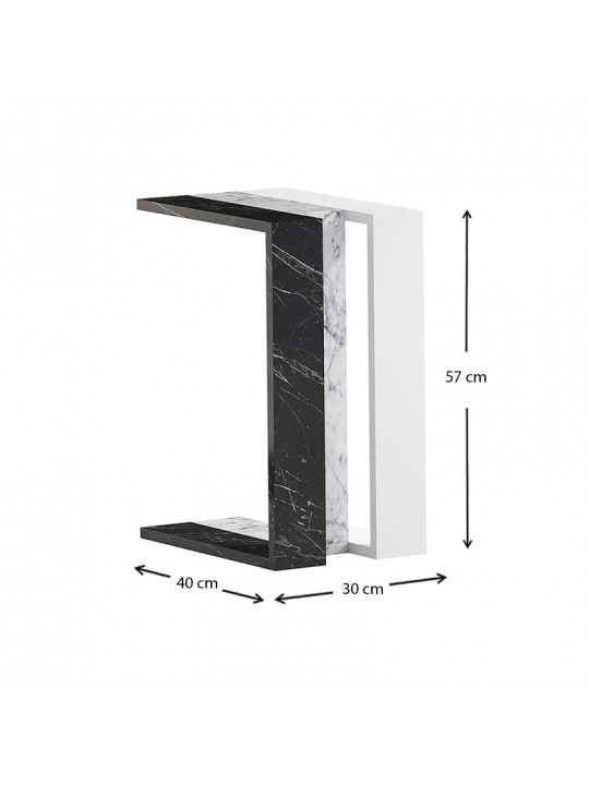 Τραπεζάκι βοηθητικό Muju Megapap μελαμίνης χρώμα μαύρο - λευκό εφέ μαρμάρου/λευκό 30x40x57εκ.