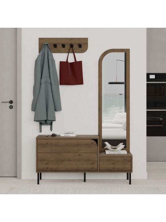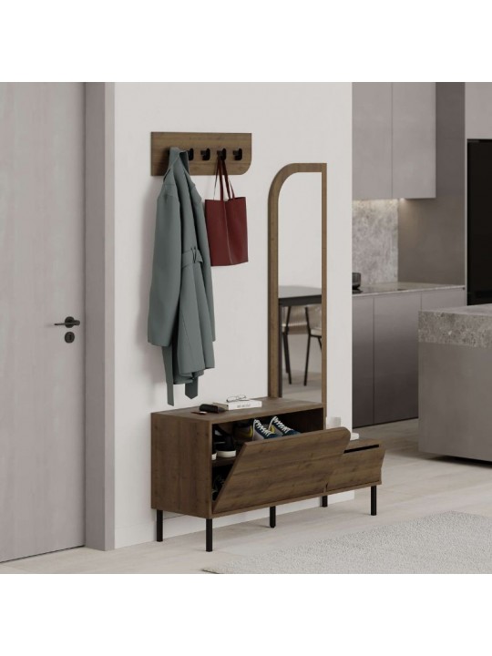 Έπιπλο εισόδου Mila Megapap με κρεμάστρα χρώμα ανοιχτό καρυδί 120x37x171,6εκ.
