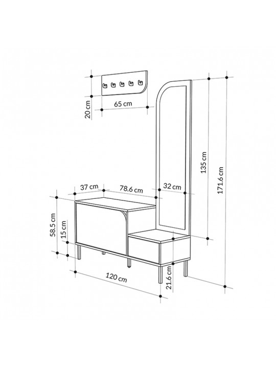 - Διαστάσεις: Μήκος 120 x Βάθος 37 x Ύψος 171,6 εκ.