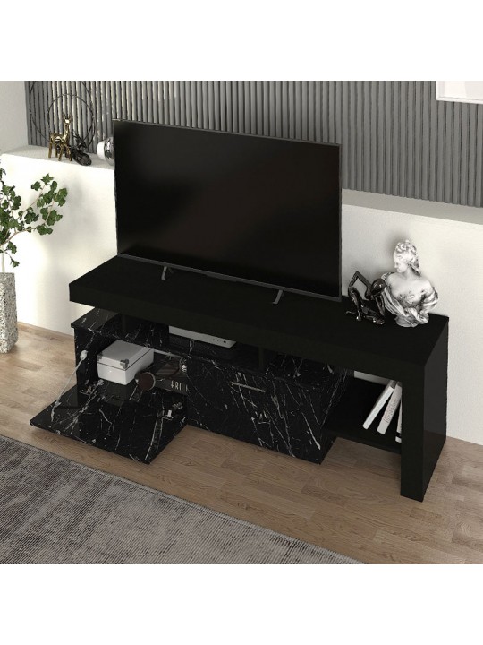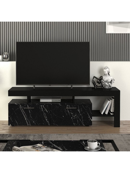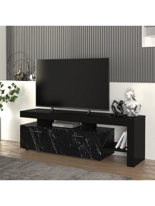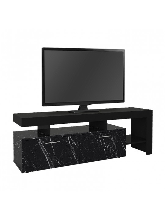 Έπιπλο τηλεόρασης Acnes Megapap χρώμα μαύρο - μαύρο εφέ μαρμάρου 160x40x53εκ.