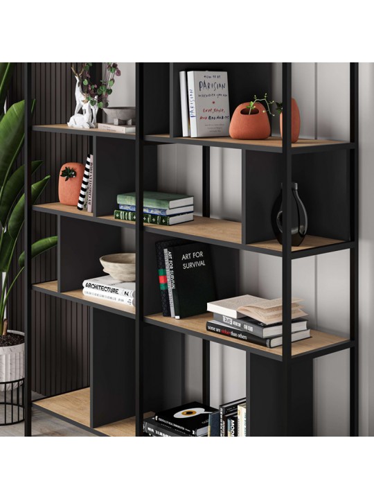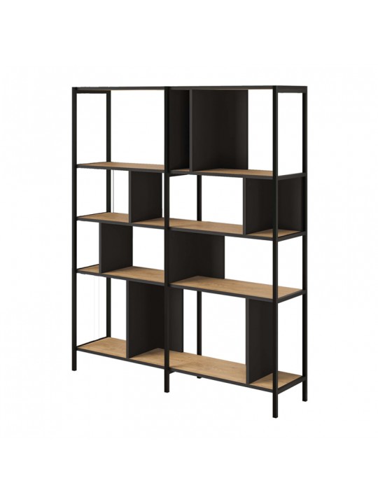 Βιβλιοθήκη Maxi Megapap χρώμα sapphire oak - silky black 144x35x175εκ.