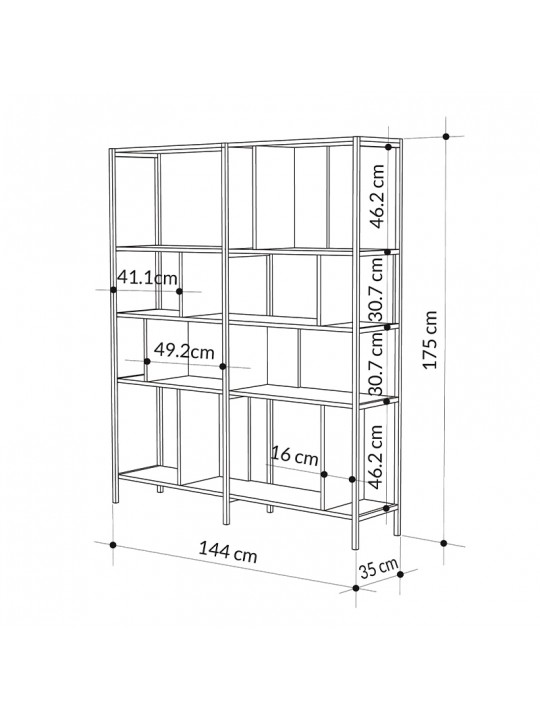- Διαστάσεις: Μήκος 144 x Βάθος 35 x Ύψος 175 εκ.