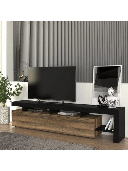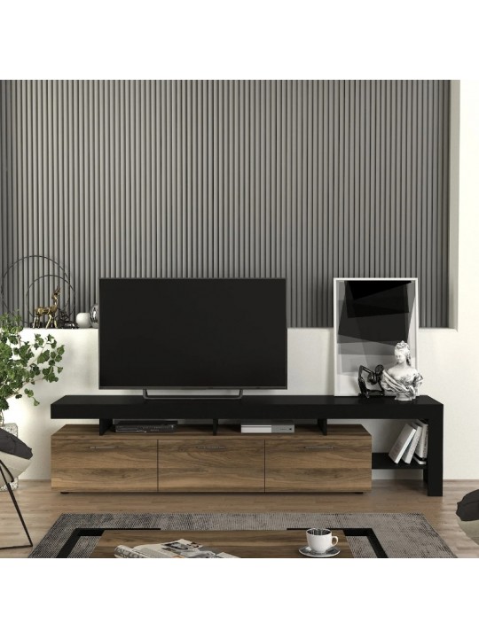 Έπιπλο τηλεόρασης Acnes Megapap χρώμα μαύρο - καρυδί 220x40x52εκ.