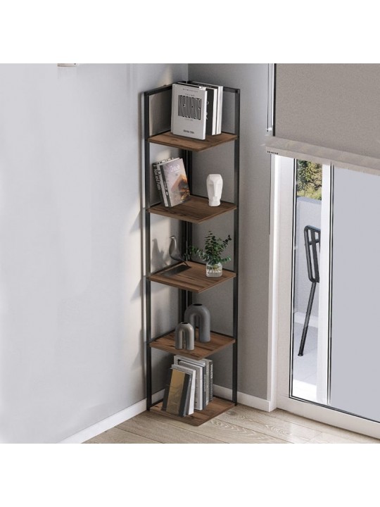 Βιβλιοθήκη γωνιακή Lidia Megapap χρώμα μαύρο - καπνιστή καρυδιά 33,5x33,5x180εκ.
