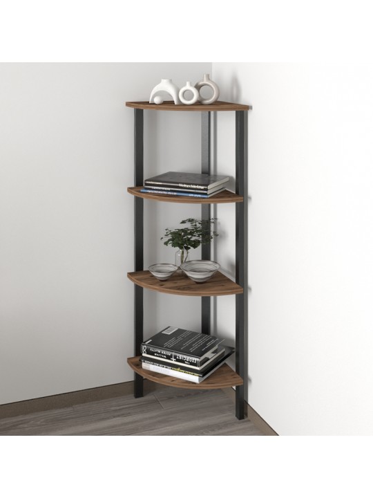 Βιβλιοθήκη γωνιακή Lela Megapap χρώμα μαύρο - καπνιστή καρυδιά 34x34x125εκ.