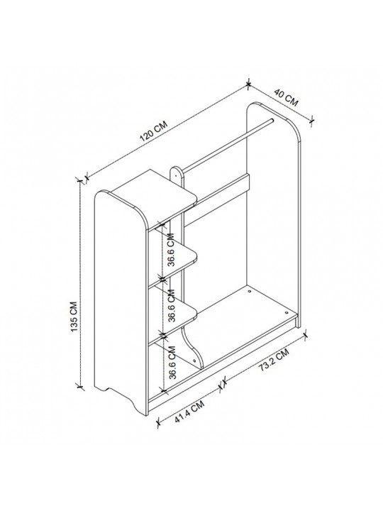 - Διαστάσεις: Μήκος 120 x Βάθος 40 x Ύψος 135 εκ.