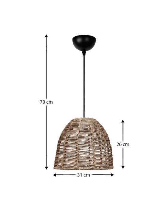 Φωτιστικό οροφής Cascais Megapap E27 από σχοινί μονόφωτο χρώμα φυσικό Ø31x70εκ.