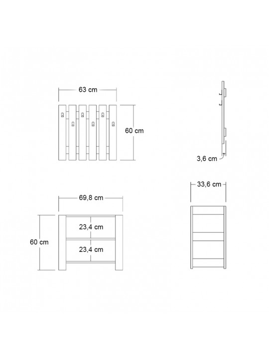 - Διαστάσεις κρεμάστρας: 63 x 60 εκ.