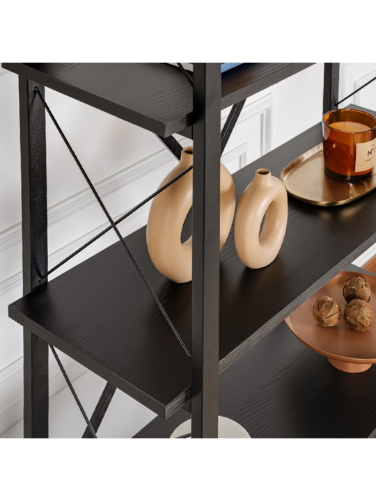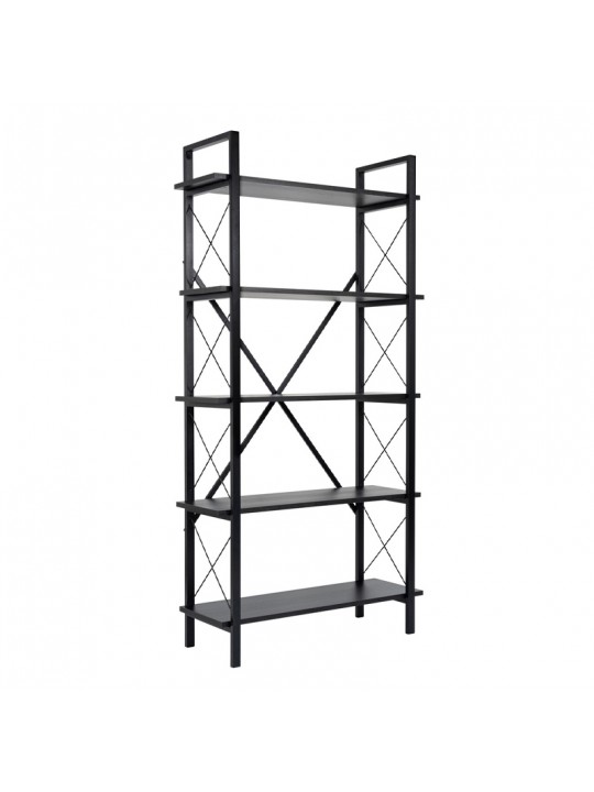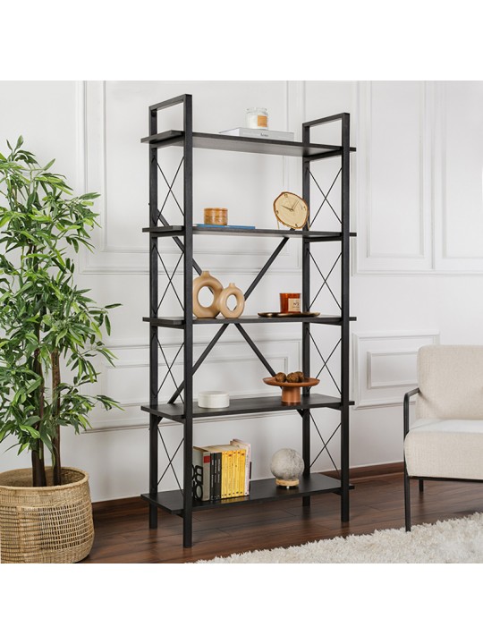 Βιβλιοθήκη Elysian Megapap χρώμα μαύρο 90x33,5x180εκ.