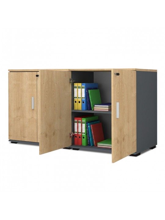 Το ντουλάπι της σειράς Venturo προσφέρει άφθονο αποθηκευτικό χώρο για έγγραφα, φακέλους και υλικά γραφείου, με στιβαρή κατασκευή και ανθεκτικά ράφια που εξασφαλίζουν μακροχρόνια χρήση. Ο μοντέρνος σχεδιασμός και το κομψό φινίρισμά του το καθιστούν ιδανική επιλογή για κάθε γραφείο που θέλει να συνδυάζει λειτουργικότητα με αισθητική. Συνδυάζεται άψογα με τα γραφεία, τις βιβλιοθήκες και τις συρταριέρες της ίδιας σειράς, δημιουργώντας έναν πλήρως οργανωμένο και αρμονικό χώρο εργασίας.