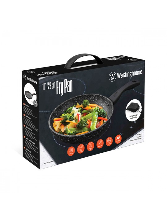 Αντικολλητικό τηγάνι (28 cm) Black Marble Series από την Westinghouse! Πρόκειται για ιδιαιτέρως χρηστικό σκεύος, καθώς ενδείκνυται για την εκτέλεση μεγάλου εύρους συνταγών, ενώ προσφέρεται για χρήση σε κάθε εστία και καθαρίζεται εύκολα στο χέρι ή στο πλυντήριο πιάτων χάρη στην διπλή αντικολλητική επίστρωση μαύρου μαρμάρου. Παράλληλα, το κομψό, high-end design του τηγανιού, σε συνδυασμό με την μοναδική συσκευασία του, το καθιστούν ιδανικό δώρο.