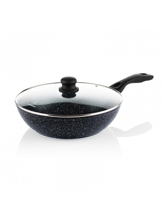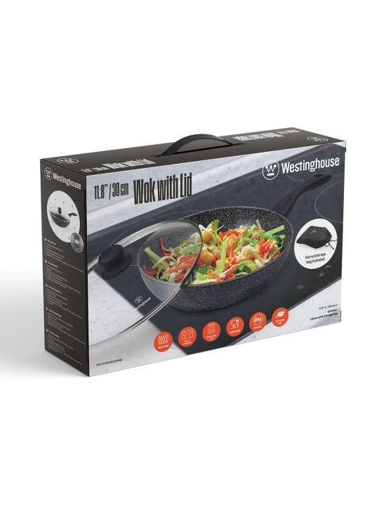Αντικολλητικό γουοκ (30 cm) με γυάλινο καπάκι Black Marble Series από την Westinghouse! Εγγυάται άνεση στην χρήση, καθώς η διπλή επίστρωση μαύρου μαρμάρου και ο επαγωγικός του πάτος το καθιστούν συμβατό με κάθε είδους εστία. Ενδείκνυται για την εκτέλεση εντυπωσιακών, υγιεινών συνταγών, ενώ επίσης καθαρίζεται εύκολα και γρήγορα στο χέρι ή στο πλυντήριο πιάτων. Τέλος, το κομψό, high-end design, σε συνδυασμό με την μοναδική συσκευασία του, το καθιστούν ιδανικό δώρο!