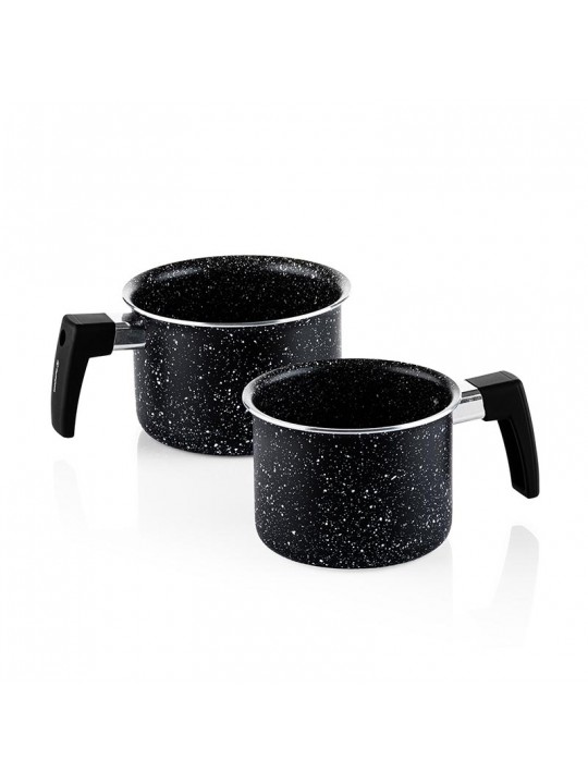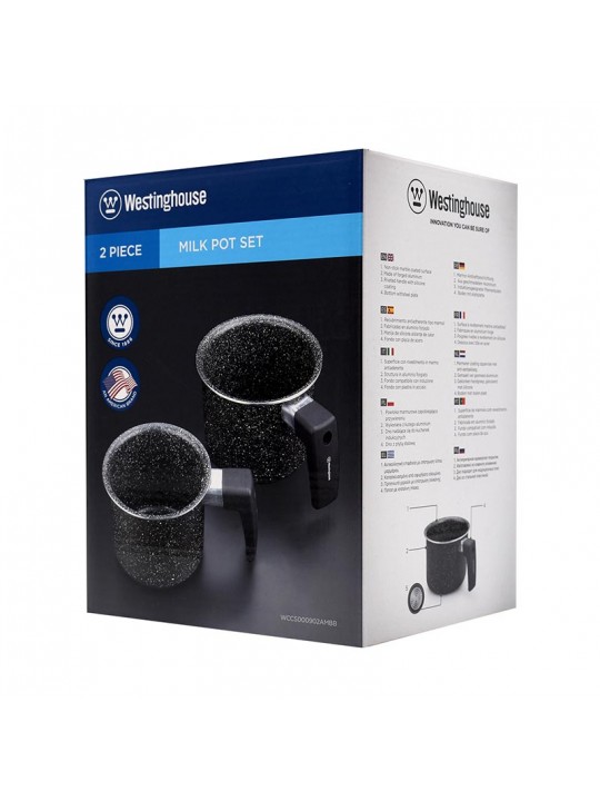Σετ 2 γαλατιέρες Black Marble Series από την Westinghouse! Ενισχυμένες με διπλή επίστρωση μαύρου μαρμάρου, είναι τα ιδανικά σκεύη για την προετοιμασία γάλατος, αλλά και για την εκτέλεση συνταγών με σούπες, ενώ επίσης καθαρίζονται με μεγάλη ευκολία στο χέρι ή στο πλυντήριο πιάτων! Χάρη στο κομψό, high-end design αλλά και και στην μοναδική συσκευασία τους, είναι το τέλειο δώρο για όλους!