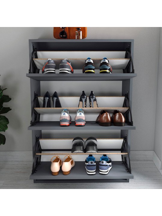 Παπουτσοθήκη μελαμίνης Nave Megapap 18 ζευγών χρώμα ανθρακί 73,6x24x110εκ.
