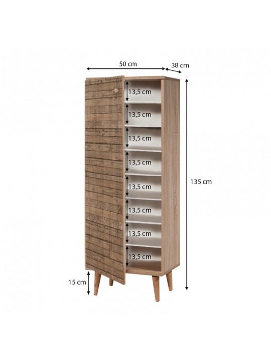 Παπουτσοθήκη - ντουλάπι Soho Megapap από μελαμίνη χρώμα sonoma 50x38x135εκ.
