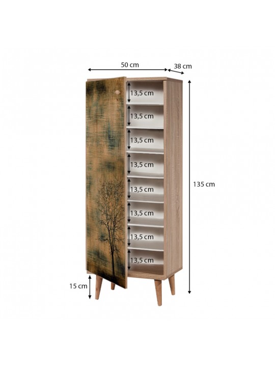 Παπουτσοθήκη - ντουλάπι Soho Megapap από μελαμίνη χρώμα sonoma 50x38x135εκ.