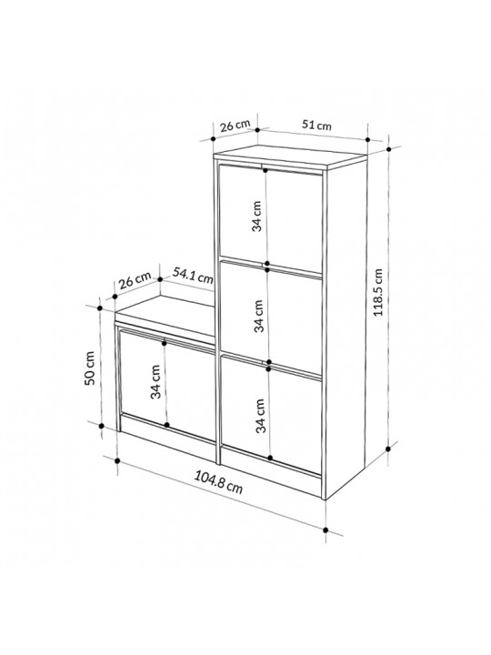 - Διαστάσεις: Μήκος 104,8 x Βάθος 26 x Ύψος 118,5 εκ.