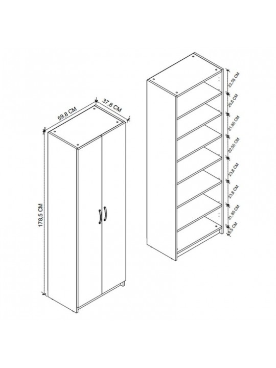- Διαστάσεις: Μήκος 59,8 x Βάθος 37,8 x Ύψος 178,5 εκ.