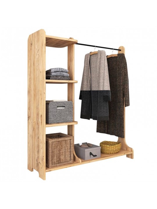 Διαθέτει μία μεγάλη μεταλλική βέργα για ανοιχτή οργάνωση των παλτών και ρούχων σας καθώς και ράφια που προσφέρονται για αποθήκευση των αξεσουάρ σας ή για δημιουργία διακοσμητικών συνθέσεων.
