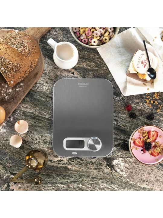 Ψηφιακή, compact ζυγαριά κουζίνας από την Cecotec! Διαθέτει 4 αισθητήρες για μέγιστη ακρίβεια μέτρησης, καθώς και λειτουργίες αφαίρεσης απόβαρου, eco power και αυτόματης ενεργοποίησης με το πάτημα ενός πλήκτρου. Είναι κατάλληλη για την ακριβή ζύγιση τόσο στερεών όσο και υγρών υλικών, ενώ η εντυπωσιακή της σχεδίαση με μεγάλη LCD οθόνη και φινίρισμα από ανοξείδωτο ατσάλι, την καθιστούν ιδανική προσθήκη σε κάθε κουζίνα!