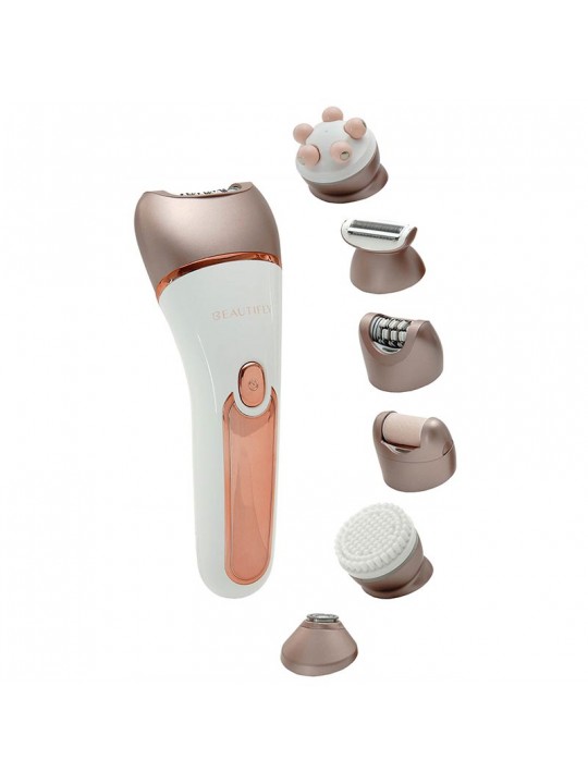 Ανακαλύψτε την 6 σε 1 αποτριχωτική και ξυριστική μηχανή της Beautifly με 6 διαφορετικές κεφαλές, ιδανική για όλους τους τύπους δέρματος. Με προστασία IPX-6 και 2 ταχύτητες, περιλαμβάνει κεφαλές για αποτρίχωση, shaving σώματος και προσώπου, μασάζ σώματος, απολέπιση και ηλεκτρική λίμα ποδιών. Είναι εξοπλισμένη με ψηφιακή οθόνη ένδειξης επιπέδου μπαταρίας και ταχύτητας, και διαθέτει αυτονομία 60 λεπτών με χρόνο φόρτισης 90 λεπτά. Περιλαμβάνονται βουρτσάκι καθαρισμού και καλώδιο φόρτισης USB.