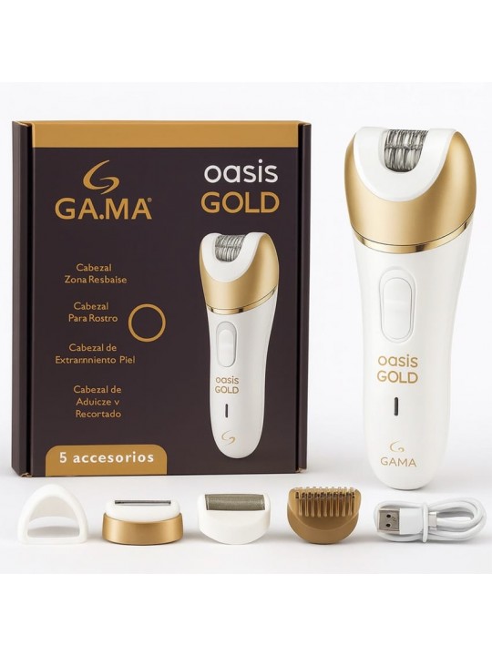 Η επαναφορτιζόμενη αποτριχωτική μηχανή/epilator Oasis Gold από την GAMA συνδυάζει αποτελεσματικότητα και άνεση, προσφέροντας λεία επιδερμίδα που διαρκεί έως και 4 εβδομάδες. Διαθέτει δύο αποσπώμενες κεφαλές – αποτριχωτική για ακριβές και απαλό αποτέλεσμα και ξυριστική για βαθύ ξύρισμα ακόμη και στις πιο ευαίσθητες περιοχές. Με 2 ταχύτητες λειτουργίας, ειδικά καλύμματα για πρόσωπο, μασχάλες και μπικίνι, καθώς και εξάρτημα skin stretcher που μειώνει την αίσθηση τραβήγματος, προσαρμόζεται στις ανάγκες κάθε χρήσης. Ο ενσωματωμένος LED φωτισμός προσφέρει καλύτερη ορατότητα, ενώ η εργονομική λαβή και η ασύρματη λειτουργία με αυτονομία 60 λεπτών κάνουν την όλη εμπειρία ακόμη πιο άνετη. Συνοδεύεται από πρακτικά αξεσουάρ, όπως θήκη μεταφοράς, βουρτσάκι καθαρισμού και καλώδιο USB.